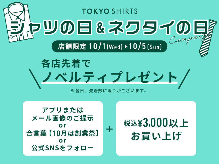 皆様、10/1はネクタイの日、10/5はシャツの日なのはご存じでしたか??